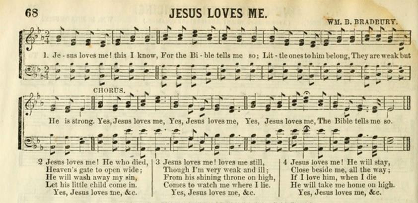 [1] https://www.military.com/history/susan-and-anna-warner.html. Also accessed: Robert J. Morgan, Then Sings My Soul, pp. 184-185; https://hymnary.org/text/jesus_loves_me_this_i_know_for_the_bible#Author. Photo of hymn accessed from: https://www.umcdiscipleship.org/articles/history-of-hymns-jesus-loves-me.