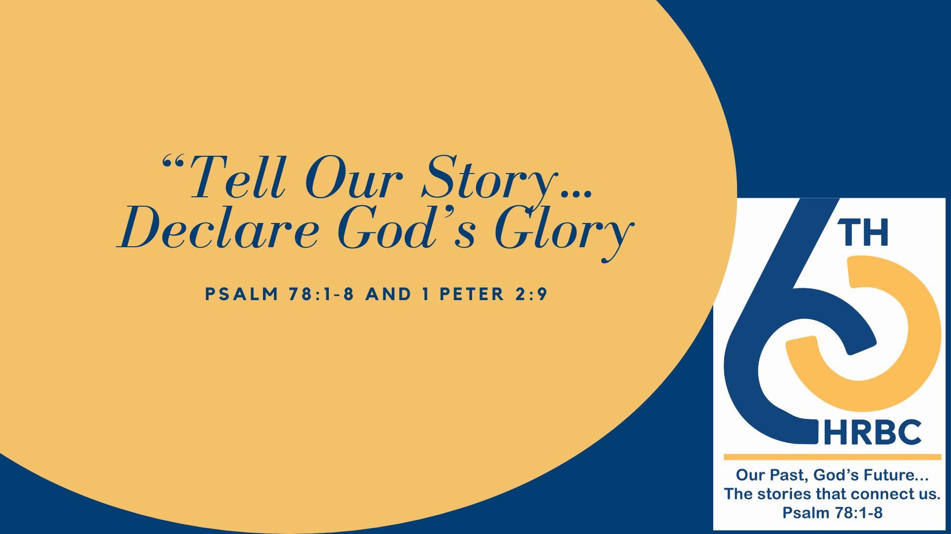 Tell our story (testimony) . . . declare his glory (evangelism) – this is a focus on 1 Peter 2:9 with the psalm in the background.